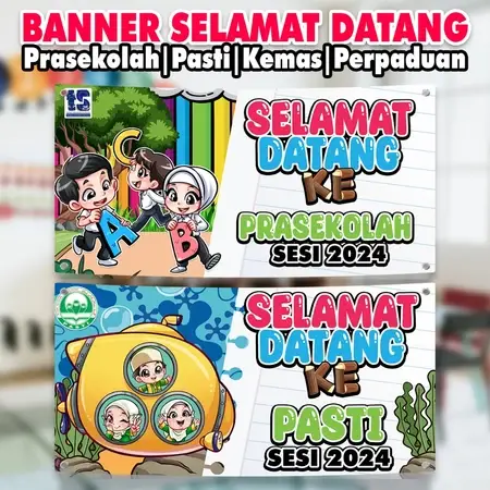 Banner SELAMAT DATANG untuk Prasekolah | Tadika Kemas | Pasti | Tabika Perpaduan (Free Editting)|