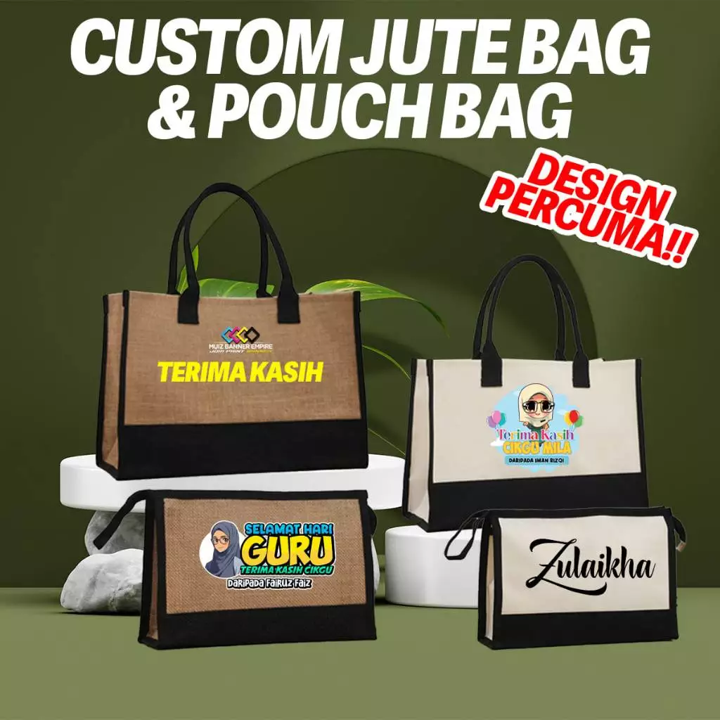 Be the first to review “Cenderahati Jute Bag & Pouch bag Custom Name & Logo for gift material Jute Canvas (FREE DESIGN)”